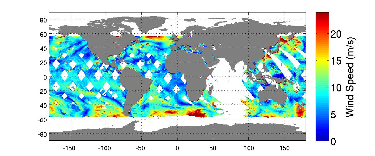 The reason spaceborne scatterometers haven't helped much with the specific question of daily wind cycles has to do with their orbits. All modern instruments have been in sun-synchronous orbits, in which a satellite is always oriented at the same angle relative to the sun. In this type of orbit, a satellite passes over every location at the same fixed times, for example, 6 a.m. and 6 p.m. over the equator. The resulting data can't throw much light on the question of how winds develop over the course of a day.