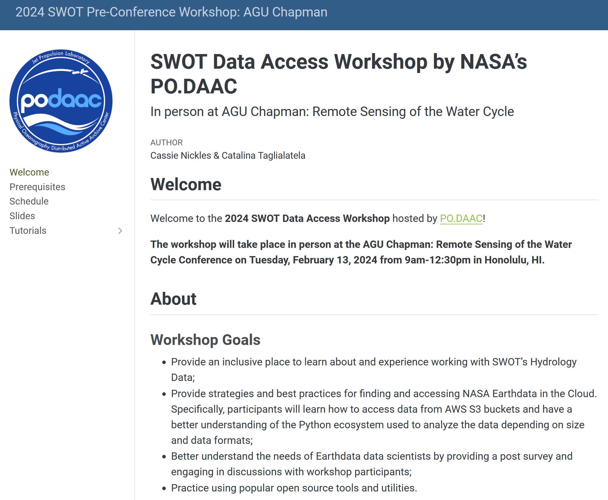 Find the content here: https://podaac.github.io/2024-SWOT-Hydro-Workshop/